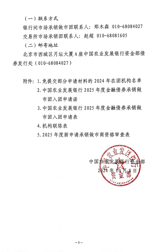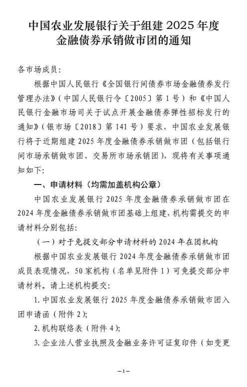 中国农业发展银行关于组建2025年度金融债券承销做市团的通知-凯发棋牌