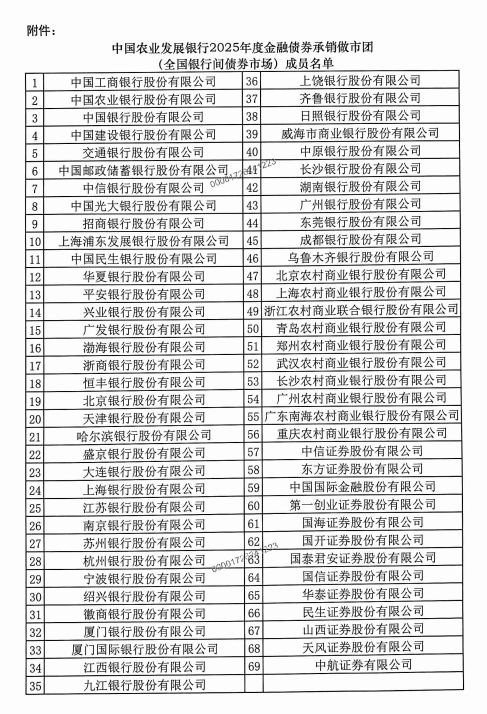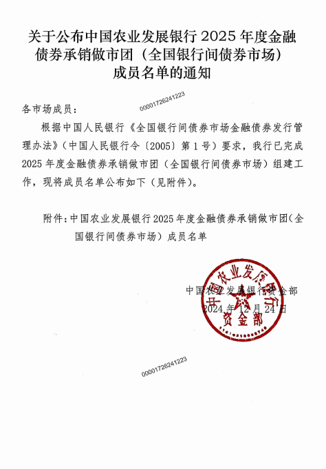 关于公布中国农业发展银行2025年度金融债券承销做市团(全国银行间债券市场)成员名单的通知-凯发棋牌