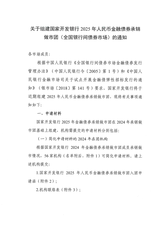 关于组建国家开发银行2025年人民币金融债券承销做市团(全国银行间债券市场)的通知-凯发棋牌