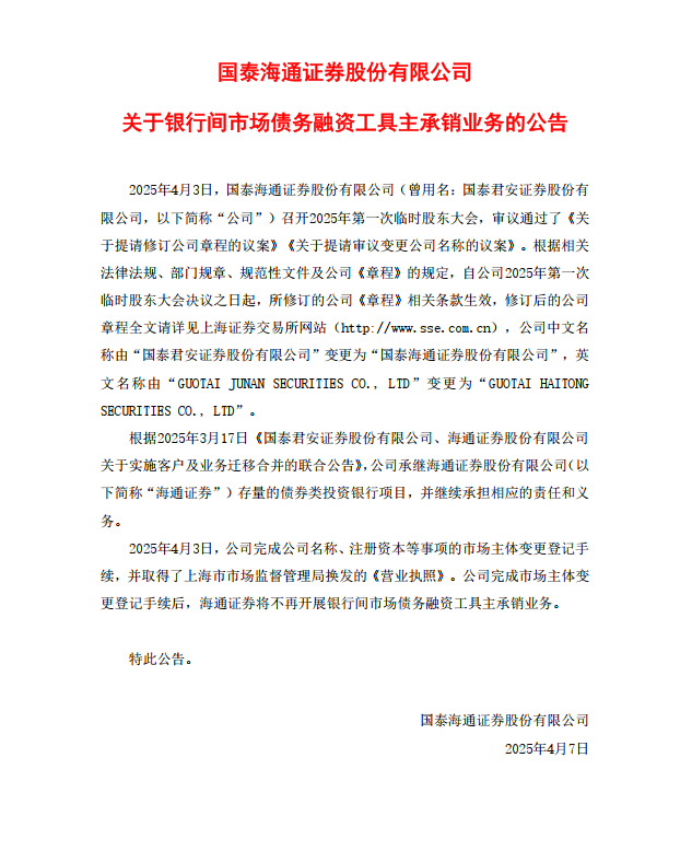 国泰海通证券股份有限公司关于银行间市场债务融资工具主承销业务的公告-凯发棋牌