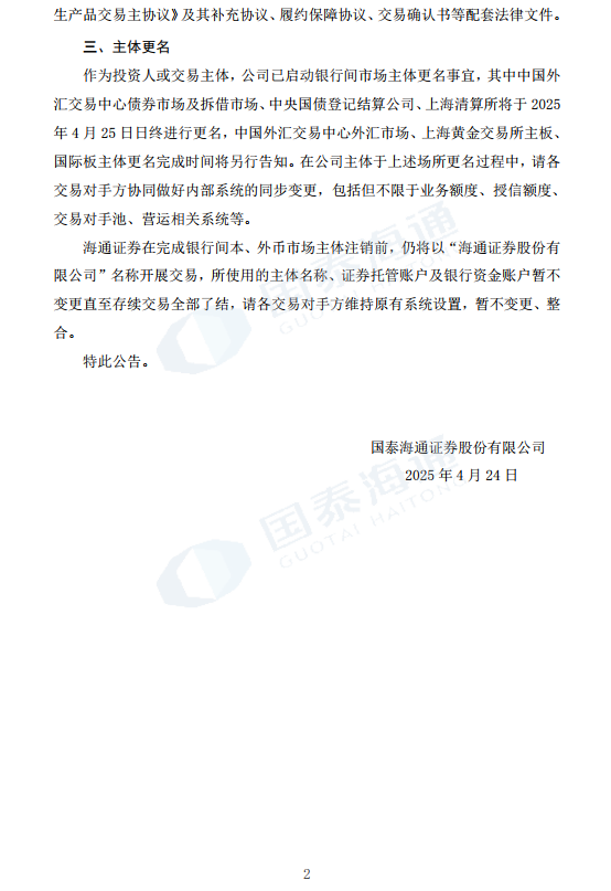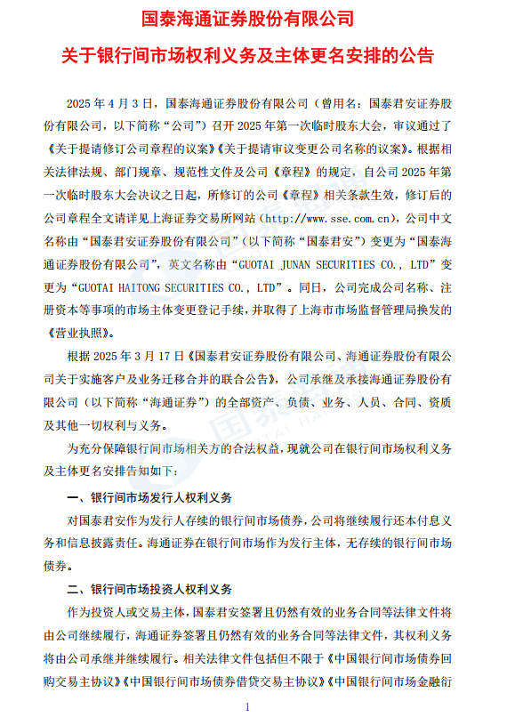 国泰海通证券股份有限公司关于银行间市场权利义务及主体更名安排的公告-凯发棋牌